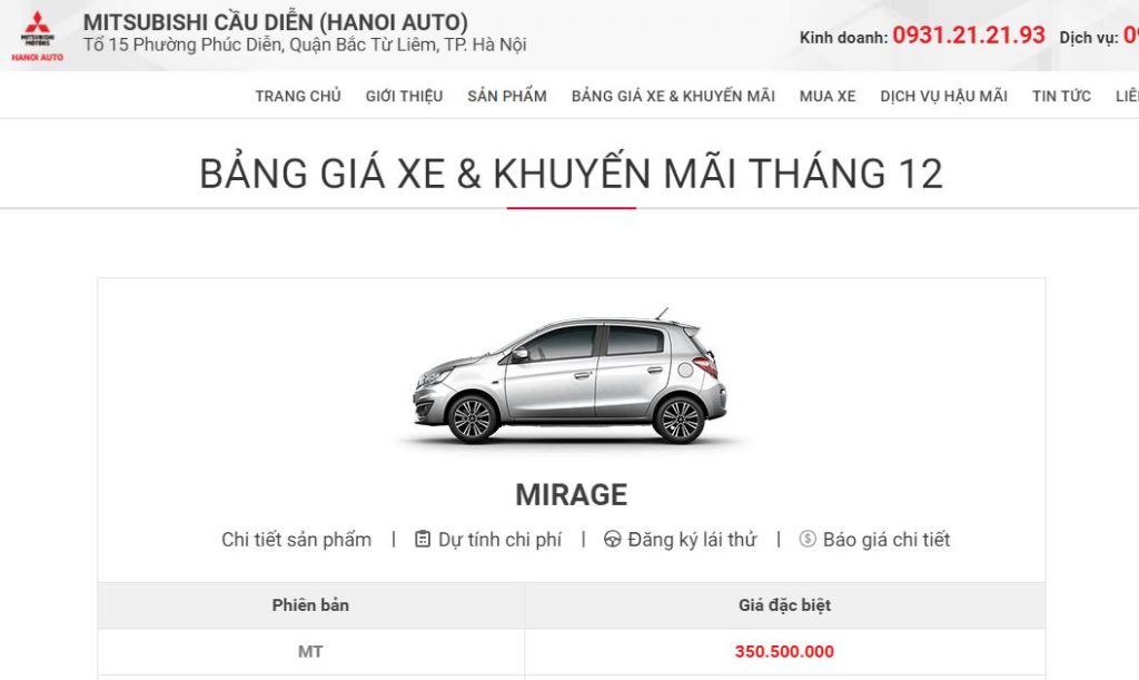 Giá xe Mitsubishi tại Mitsubishi Cầu Diễn (Hanoi Auto) Giá xe Mitsubishi tháng 12/2018 tại Mitsubishi Cầu Diễn cùng các chương trình khuyến mại, giảm giá, ưu đãi, hỗ trợ lãi suất thấp khi mua xe trả góp: Mitsubishi Outlander 2018, Triton 2018, Mirage 2018, Attrage 2018, Pajero 2018, Outlander Sport, Pajero Sport 2018 máy dầu, […]