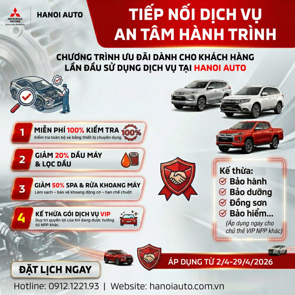 Ưu đãi dành cho xe lần đầu làm dịch vụ tại Mitsubishi Cầu Diễn (Hanoi Auto)